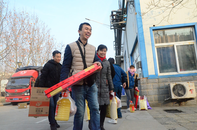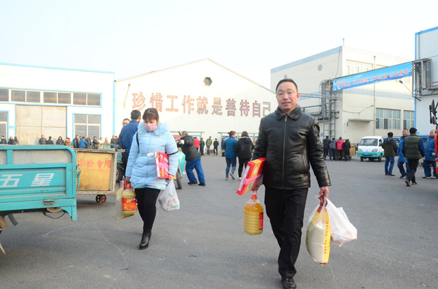 1月21日,公司主廠區(qū)廣場(chǎng)上再現(xiàn)熱烈氣氛,員工們以部門為單位,在這里領(lǐng)取公司為在崗員工和退休職工準(zhǔn)備的豬肉、花生油、大米等“年貨”,以體現(xiàn)對(duì)廣大員工建設(shè)企業(yè)、奉獻(xiàn)事業(yè)的慰問之情。