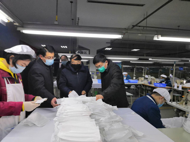 在公司口罩生產(chǎn)現(xiàn)場(chǎng),公司黨委書記、董事長(zhǎng)王力民詳細(xì)介紹了公司在疫情防控方面所做的工作,以及當(dāng)前民用口罩生產(chǎn)產(chǎn)能和新增產(chǎn)能項(xiàng)目推進(jìn)情況,同時(shí)對(duì)公司其他板塊的復(fù)工復(fù)產(chǎn)準(zhǔn)備工作做了說明?,F(xiàn)場(chǎng)了解情況后,佘春明對(duì)公司節(jié)日期間組織部分員工提前復(fù)工生產(chǎn)口罩,積極踐行企業(yè)理念和社會(huì)責(zé)任,助力新型冠狀病毒疫情防控阻擊戰(zhàn),給予了充分肯定。他表示,口罩作為防護(hù)必需品,是各行業(yè)返崗復(fù)工的重要保障;企業(yè)要借力金融杠桿,加快項(xiàng)目立項(xiàng)和設(shè)備引進(jìn)進(jìn)度,千方百計(jì)改善生產(chǎn)條件,盡快提高生產(chǎn)供應(yīng)能力。