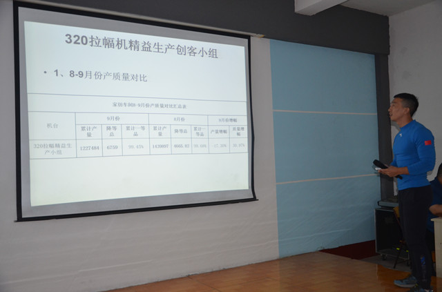 10月11日,公司家紡車間在職工大學(xué)大教室舉行了9月份精益生產(chǎn)總結(jié)會,對車間9月份的精益生產(chǎn)運(yùn)行情況進(jìn)行總結(jié),并對相關(guān)問題進(jìn)行剖析。各主要精益生產(chǎn)承包小組對自身的成績以及不足進(jìn)行總結(jié),并制定了后續(xù)改進(jìn)計(jì)劃和提升目標(biāo)。會議由車間技術(shù)主管鄭凱主持,車間主任王旭洲進(jìn)行了全面總結(jié)并對持續(xù)深化精益生產(chǎn)工作提出了新要求。