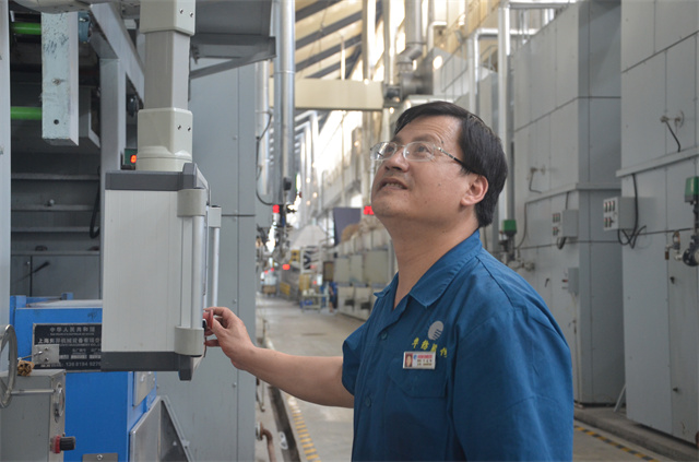 面料車間4號打底機(jī)的紀(jì)建峰,進(jìn)入公司已10年有余,從事過多個機(jī)臺的操作工種。