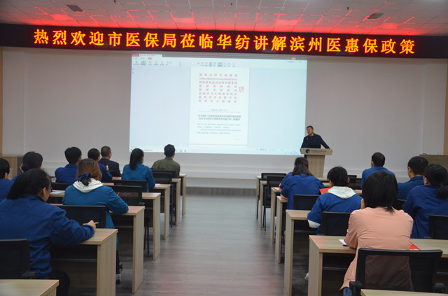 10月14日,中國人民財產(chǎn)保險股份有限公司濱州市分公司副總經(jīng)理畢德亮,業(yè)務(wù)經(jīng)理龔雷業(yè)務(wù)、呂宏偉等一行來到公司,在2號會議室為員工代表深入講解了濱州醫(yī)惠保的相關(guān)參保政策。