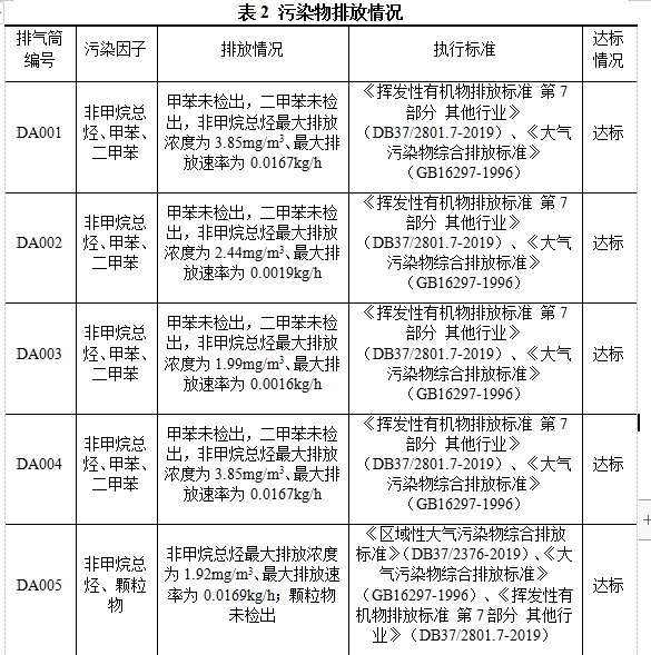 注:①排氣筒編號來自排污許可證對排氣筒的編號;
