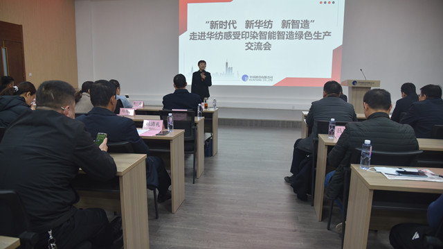 公司黨委副書記盛守祥代表公司,向與會領(lǐng)導(dǎo)及會員單位代表介紹了公司“退城進(jìn)園”暨“智能綠色工廠建設(shè)項目”、升級印染全流程的智能制造等情況,并圍繞公司近年來大力推進(jìn)企業(yè)轉(zhuǎn)型升級和新舊動能轉(zhuǎn)換工作,重點介紹了公司在智能智造、綠色生產(chǎn)方面的主要做法與經(jīng)驗。公司副總工程師王國棟對公司近年來推動轉(zhuǎn)型升級及打造“智慧華紡”的整體發(fā)展成效,作了專題報告。