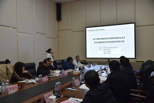 導(dǎo)讀:1月14日,山東省重點研發(fā)計劃(公益類)項目“基于廢棉織物的胺化纖維素樹脂的合成及其對含氟表面活性劑和染料的有效去除”項目驗收會議在公司舉行。