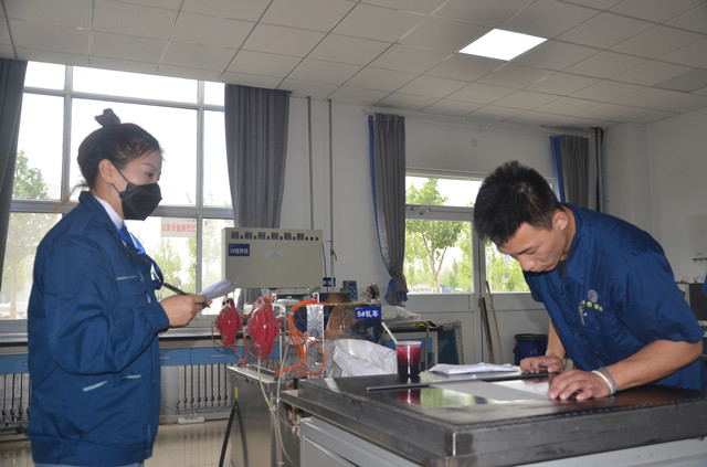圖為4月26日公司對(duì)家紡車(chē)間化驗(yàn)室新員工進(jìn)行現(xiàn)場(chǎng)考評(píng)時(shí)的情形