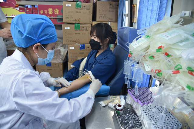 獻血隊伍中,既有工作多年的老同志,也有剛剛參加工作的新員工。獻血車就位后,員工在濱州市中心血站工作人員的指導(dǎo)下,認真填寫獻血登記表、測量血壓、抽血化驗,經(jīng)血液檢驗合格后開始獻血。“我參加無償獻血的初衷,就是想盡自己的一點力量。”在場參與獻血的一名員工說到。簡單的一句話,展現(xiàn)的卻是充滿溫暖情感的無私之愛。