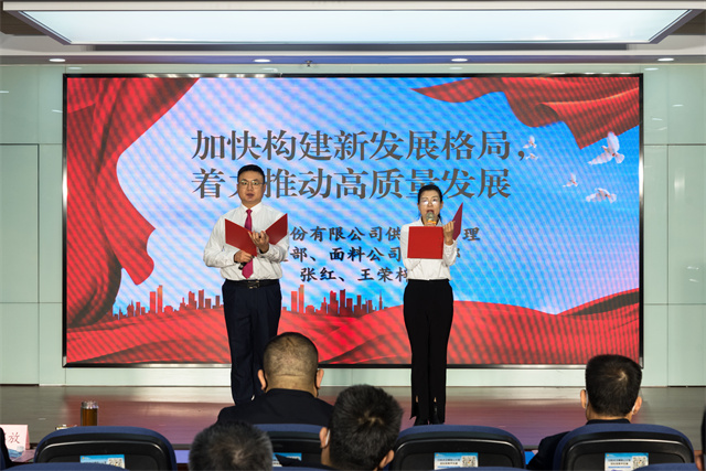 公司供應(yīng)鏈管理黨支部、面料公司黨支部代表張紅、王榮梓誦讀《加快構(gòu)建新發(fā)展格局 著力推動(dòng)高質(zhì)量發(fā)展》。堅(jiān)持實(shí)事求是,融入高質(zhì)量發(fā)展大局;堅(jiān)持守正創(chuàng)新,拓寬高質(zhì)量發(fā)展路徑;堅(jiān)持行穩(wěn)致遠(yuǎn),提升高質(zhì)量發(fā)展能力。華紡股份將以高質(zhì)量發(fā)展為目標(biāo),引領(lǐng)企業(yè)向更高水平闊步邁進(jìn)。