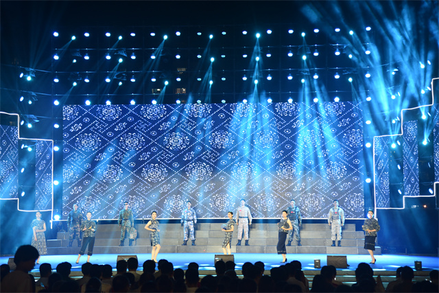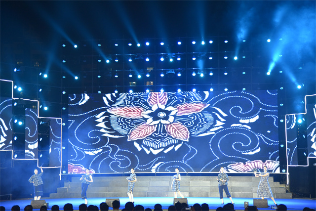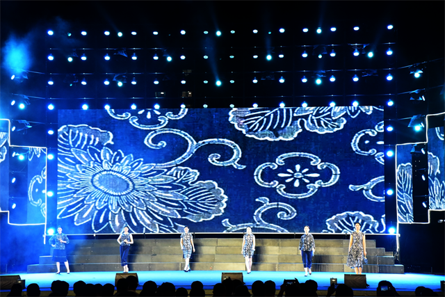 此次文藝匯演中,公司參演人員盡著由公司設(shè)計(jì)生產(chǎn)的服裝產(chǎn)品。藍(lán)印花布系列服飾以藍(lán)白分明、清新明質(zhì)、純真素樸、典雅大方的藝術(shù)特點(diǎn)體現(xiàn)了濱州大地濃厚的文化底蘊(yùn)。