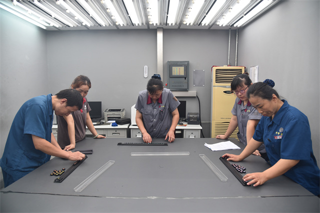 標準質(zhì)量部牽頭組織各印染車間、實驗室對技術員、實驗員開展色棋評定,切實強化提升員工產(chǎn)品質(zhì)量意識,提高顏色符合率,鼓勵廣大員工在日常生產(chǎn)中弘揚工匠精神,堅持質(zhì)量第一,精益求精。