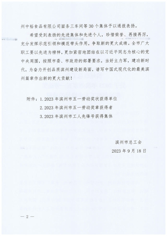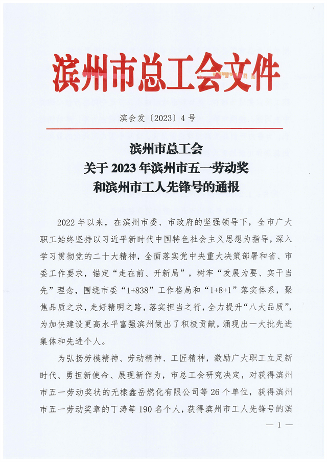 導(dǎo)讀:近日,濱州市總工會發(fā)布了“關(guān)于2023年濱州市五一勞動獎和濱州市工人先鋒號的通報”,