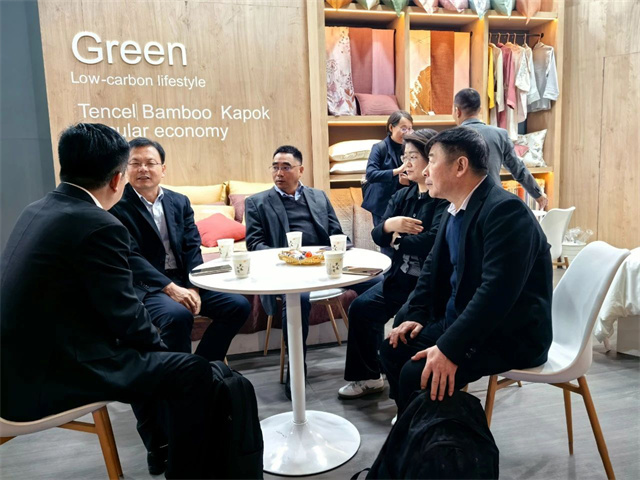 展會(huì)首日,中國紡織工業(yè)聯(lián)合會(huì)副會(huì)長楊兆華等領(lǐng)導(dǎo)專程到華紡股份展位參觀指導(dǎo)。領(lǐng)導(dǎo)們認(rèn)真聽取了家紡公司總經(jīng)理成汝海對(duì)家紡產(chǎn)品的介紹,仔細(xì)觀看了解了各類展品。楊兆華副會(huì)長對(duì)華紡股份有限公司在產(chǎn)業(yè)升級(jí)、產(chǎn)品結(jié)構(gòu)調(diào)整方面取得的成績(jī)給予了充分肯定,希望公司繼續(xù)加大研發(fā)投入,提升產(chǎn)品科技含量和附加值,進(jìn)一步加強(qiáng)品牌建設(shè),提高中國家紡產(chǎn)品在國際市場(chǎng)的知名度和影響力。