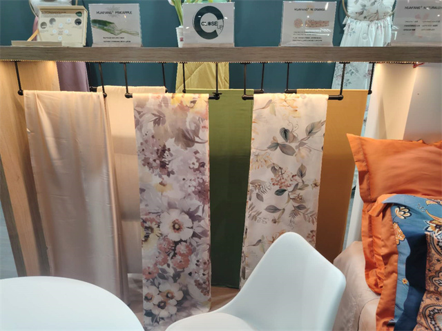此屆法蘭克福家紡展,華紡股份家紡分公司打造了以“Green world”為主題,以綠色環(huán)??沙掷m(xù)的特色纖維產(chǎn)品為主材質(zhì),研發(fā)了醋酸系列/真橙系列/木棉系列/絲質(zhì)系列/超柔系列/麻系列六大系列產(chǎn)品,從材質(zhì)、功能、膚感、科技、花型、款式等多方面對(duì)產(chǎn)品進(jìn)行了融合升級(jí),吸引了來自法國、意大利、葡萄牙等諸多國家的客戶進(jìn)入展位進(jìn)行咨詢洽談!其中,迎合歐洲市場(chǎng)喜好的亞麻、漢麻提花、色織簡(jiǎn)約條紋產(chǎn)品也成功吸引了來自歐美的客戶。