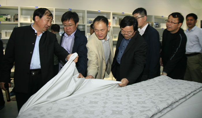 日前,濱州市政府組織相關(guān)部門負(fù)責(zé)人組成的觀摩團(tuán)走進(jìn)相關(guān)單位參觀,公司作為本次參觀的重點(diǎn)之一,向觀摩團(tuán)展示了公司近年來在推進(jìn)“一體兩翼”發(fā)展布局、轉(zhuǎn)型升級(jí)以及整體創(chuàng)新等方面所取得的成效。公司黨委書記、董事長王力民帶領(lǐng)觀摩團(tuán),參觀了公司科技產(chǎn)業(yè)園花二車間、花布產(chǎn)品開發(fā)部、中控室、家紡展廳、家紡成品車間和智能立體倉庫等處所。
