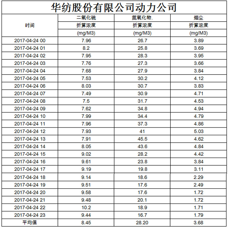 煙氣排放數(shù)據(jù)信息公開2017.4.24數(shù)據(jù)