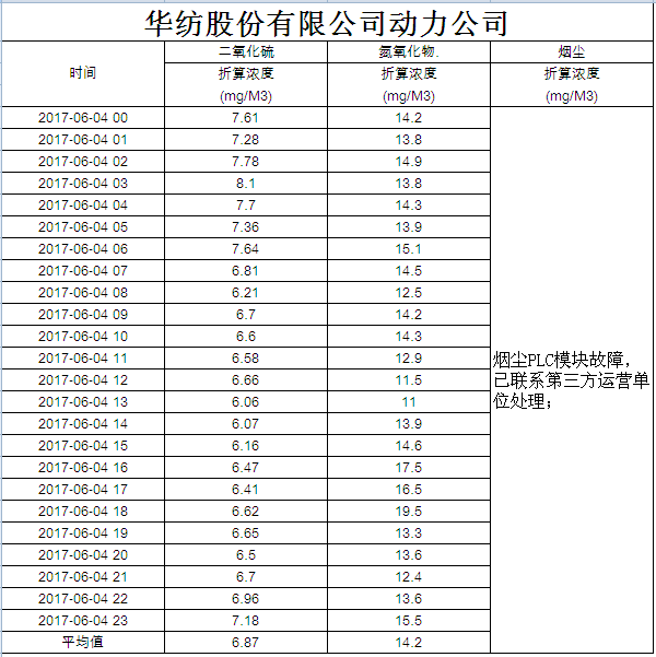 煙氣排放數(shù)據(jù)信息公開2017.6.4數(shù)據(jù)