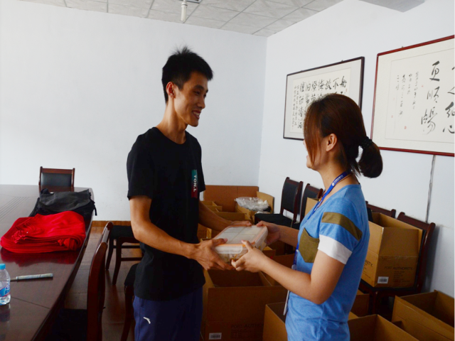 “吳青凱,生日快樂”,正在車間整理貨物的服裝公司業(yè)務員吳青凱聽到有人叫自己,一回身,只見營銷體系團支部書記姜琳紅把一份工作餐遞到手里??粗矍暗捏@喜,吳青凱開心的說:“原來今天是我的生日啊,謝謝公司對我們單身員工的關愛”。
