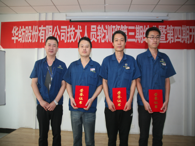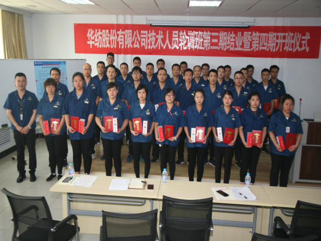 6月18日,公司專業(yè)技術(shù)輪訓(xùn)班第三期結(jié)業(yè)暨第四期開班儀式,在公司工程技術(shù)研究院舉行。儀式上,工程技術(shù)研究院副院長(zhǎng)孫紅玉對(duì)第三期輪訓(xùn)工作進(jìn)行了總結(jié);總工程師羅維新宣讀了《關(guān)于對(duì)染整專業(yè)技術(shù)培訓(xùn)班(第三期)馬士國等35人準(zhǔn)予結(jié)業(yè)的通報(bào)》、《關(guān)于對(duì)染整專業(yè)技術(shù)培訓(xùn)班(第三期)優(yōu)秀團(tuán)隊(duì)、優(yōu)秀學(xué)員的表彰決定》、《關(guān)于對(duì)染整專業(yè)技術(shù)培訓(xùn)班(第四期)學(xué)員組成的通報(bào)》;總經(jīng)理閆英山為第三期輪訓(xùn)班結(jié)業(yè)學(xué)員頒發(fā)結(jié)業(yè)證書,為優(yōu)秀團(tuán)隊(duì)花二車間小組及馬士國、李義、陳愛民等三名優(yōu)秀學(xué)員頒發(fā)獎(jiǎng)狀證書,為第四期學(xué)員頒發(fā)了專業(yè)學(xué)習(xí)書籍;王金亮、馬士國、商曉峰分別代表往期學(xué)員、本期學(xué)員和下期學(xué)員發(fā)言;公司黨委書記、董事長(zhǎng)王力民圍繞堅(jiān)持“求學(xué)、求知、求真、求實(shí)”的作風(fēng)信條做了重要講話。