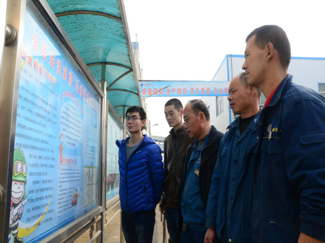 圖為員工在消防安全宣傳專欄前了解消防知識(shí)的情形。