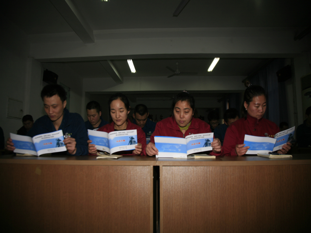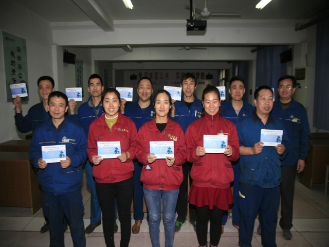 圖為公司向生產(chǎn)一線部分輪班(工段)長發(fā)放《手冊》時的情形。