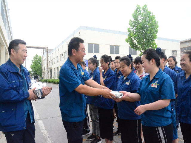 進(jìn)入5月下旬以來(lái),魯北地區(qū)氣溫逐漸升高,生產(chǎn)企業(yè)的防暑降溫工作提到了議事日程。公司為做好此項(xiàng)工作,采取多措并舉,在最大限度改善生產(chǎn)作業(yè)環(huán)境的同時(shí),為員工發(fā)放夏季工裝等用品,加大向一線生產(chǎn)車(chē)間發(fā)送西紅柿湯、綠豆湯等降溫飲品,以確保高溫時(shí)節(jié)員工的體能需要和身心健康。